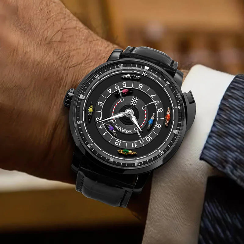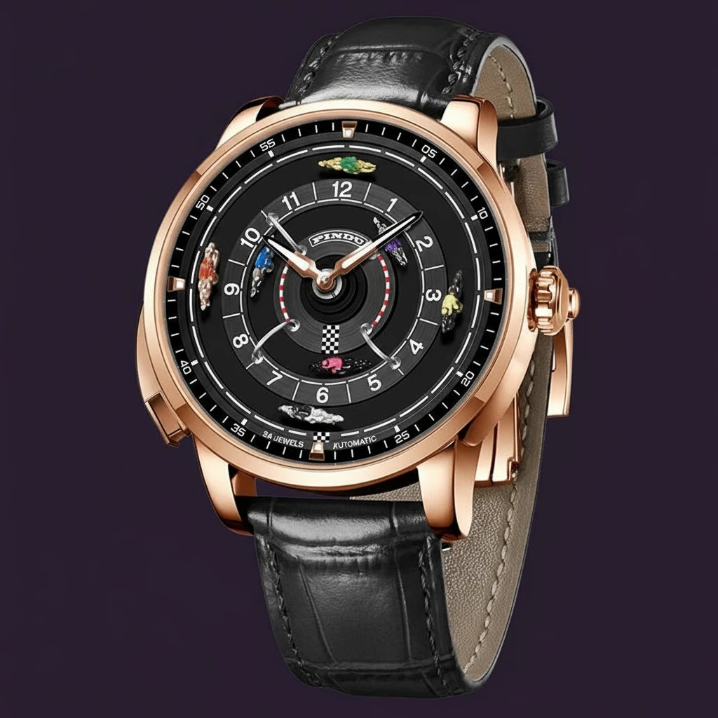 Pindu Designs NH35 Men's Mechanical Watch Press Button Turn Horse Riding Roulette Blue Sapphire Mirror Miyota Movement Jacob